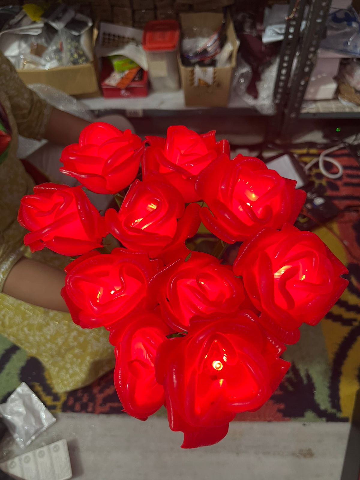 Enhance your outdoor wedding ambiance with this set of 10 artificial LED rose flower lights, designed for garden decoration. Each light offers a realistic rose appearance combined with energy-efficient LED illumination, creating a romantic and elegant atmosphere. Equipped with a driver for safe and consistent power supply, these weather-resistant lights are perfect for outdoor use, adding a delicate glow that complements evening celebrations with durability and style.